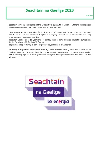 Seachtain na Gaeilge took place in the College from 13th-17th of March— A time to celebrate our