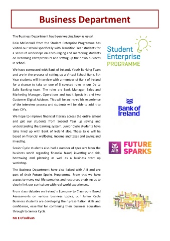 The Business Department have also liaised with AIB and are