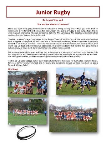 To the De La Salle College Junior rugby team of 2022/2023, thank you for every step you have taken,