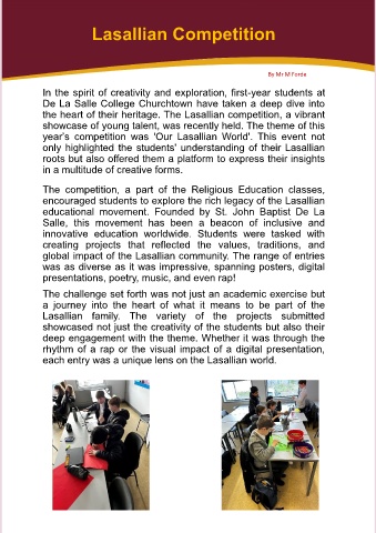 year’s competition was 'Our Lasallian World'. This event not