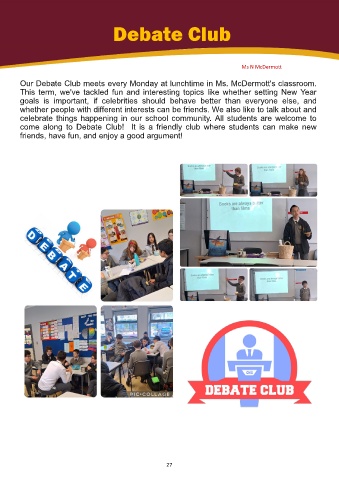 Our Debate Club meets every Monday at lunchtime in Ms. McDermott's classroom.
