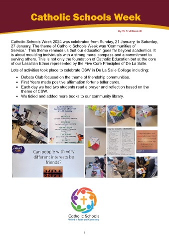 27 January. The theme of Catholic Schools Week was ‘Communities of