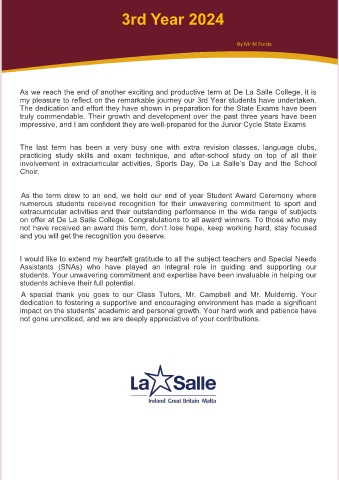 my pleasure to reflect on the remarkable journey our 3rd Year students have undertaken.
