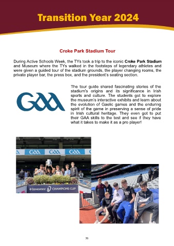 During Active Schools Week, the TYs took a trip to the iconic Croke Park Stadium