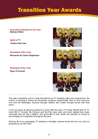 It has truly been an absolute pleasure to work with this year’s TY group. Myself and the TY