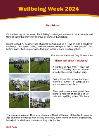On the last day of the week, ‘Fix it Friday’ challenged students to look inwards and